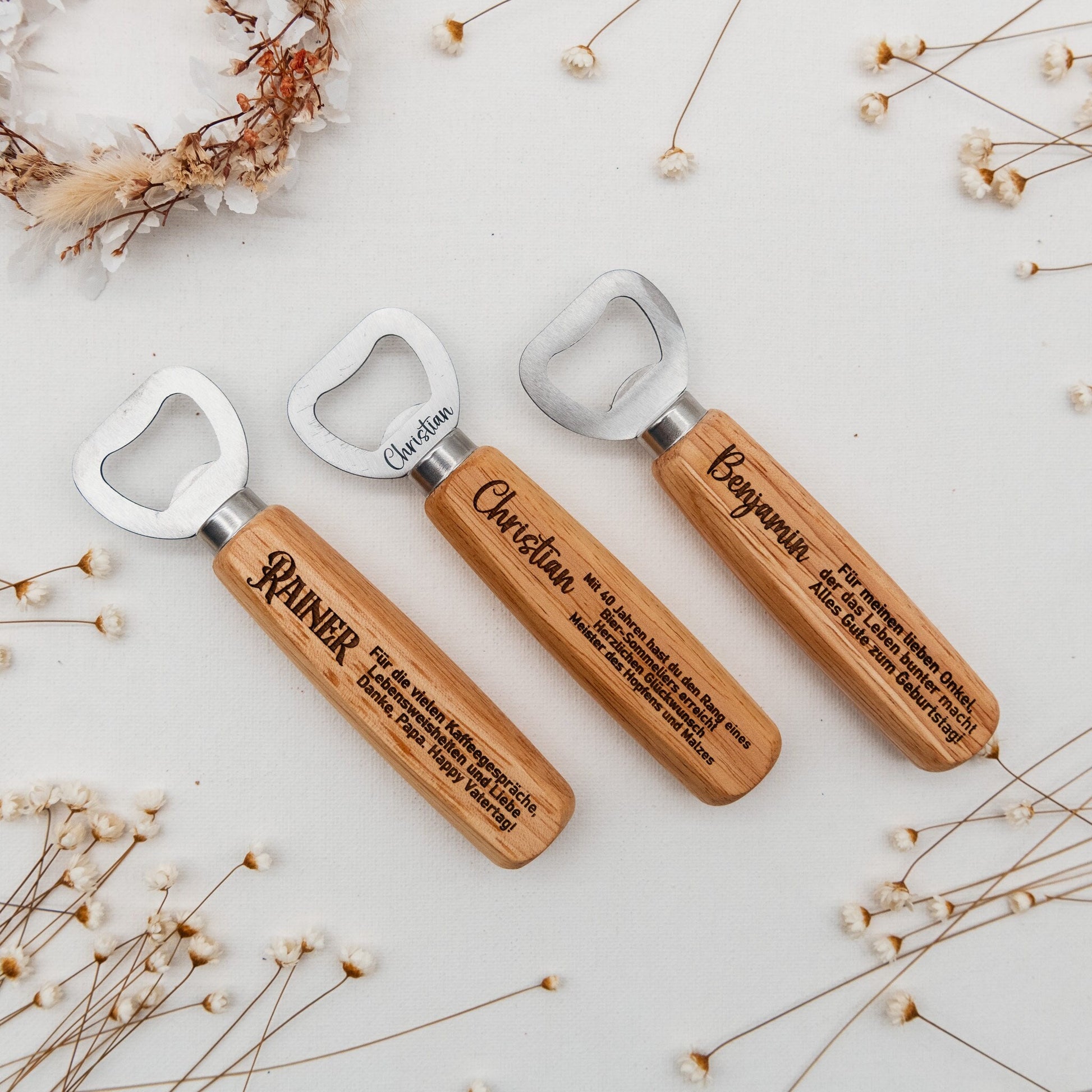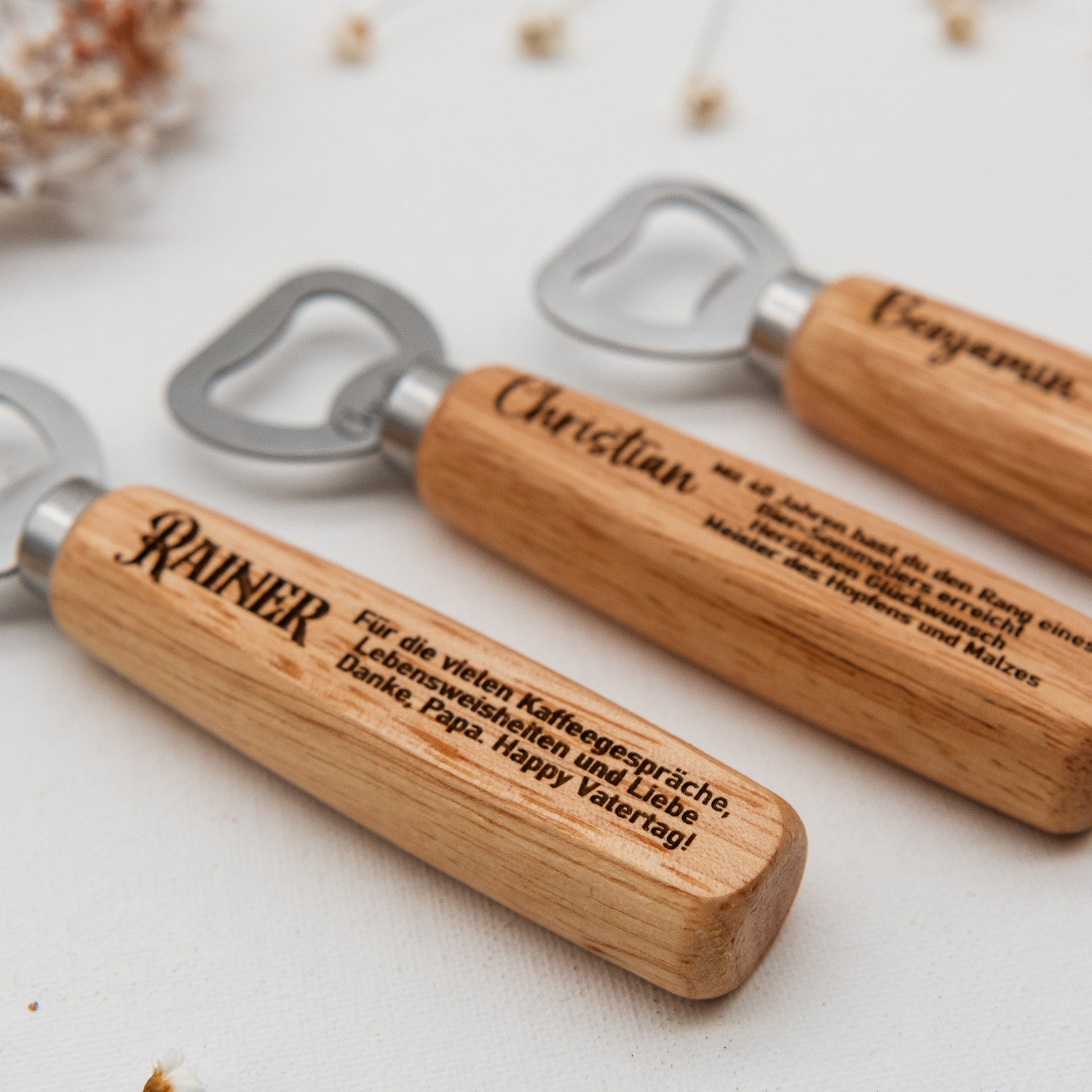Flaschenöffner personalisiertes Geschenk mit Wunschgravur, auch Logos und Firmennamen möglich. Mengenrabatt
