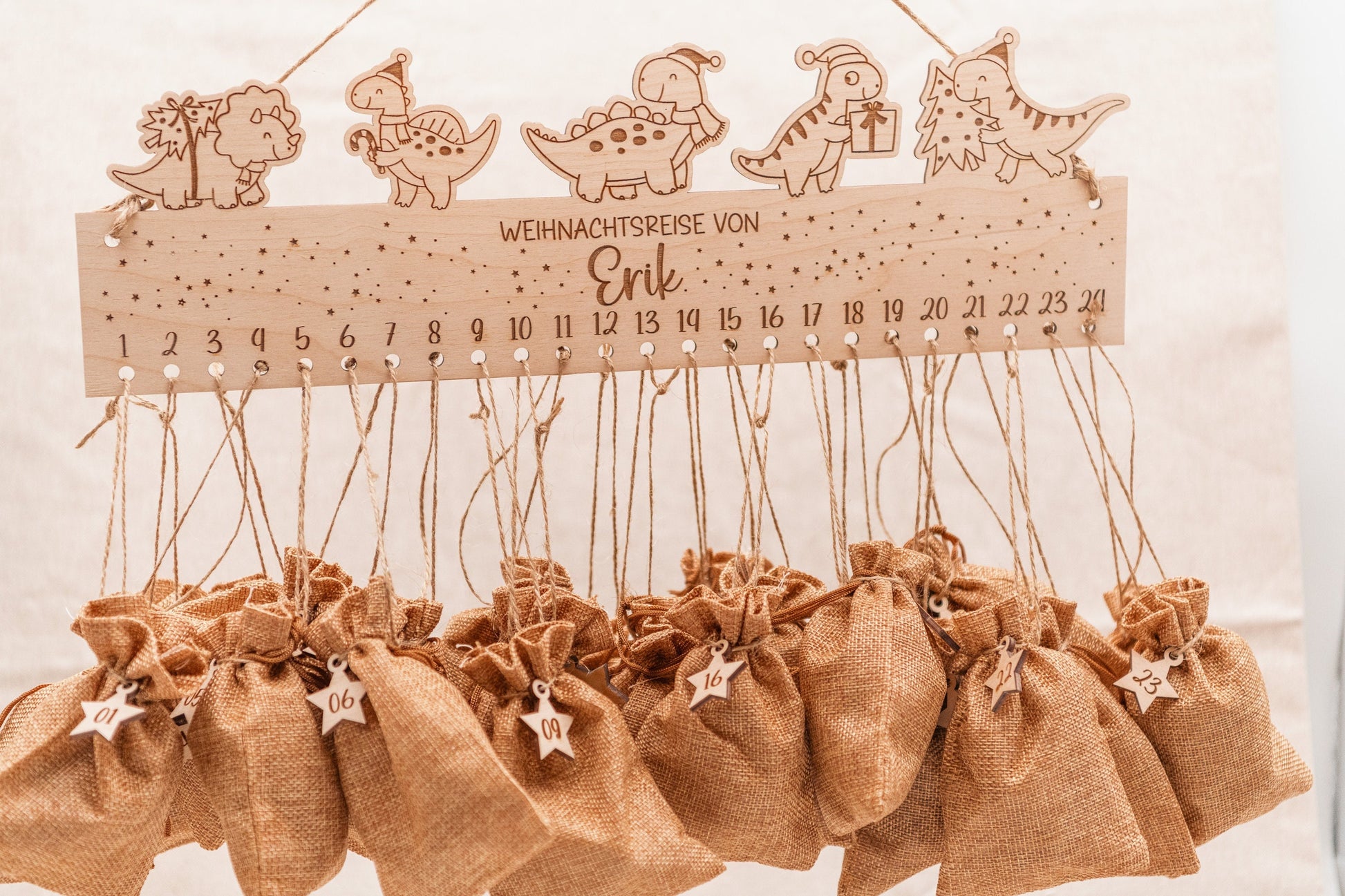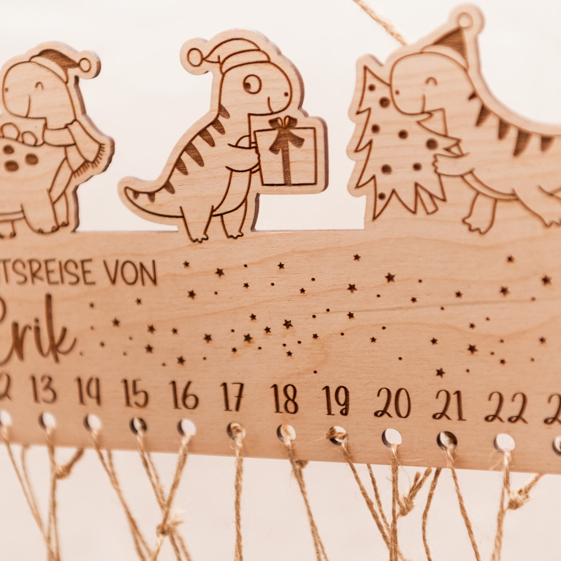 Personalisierter Dino Adventskalender mit Namen aus Holz