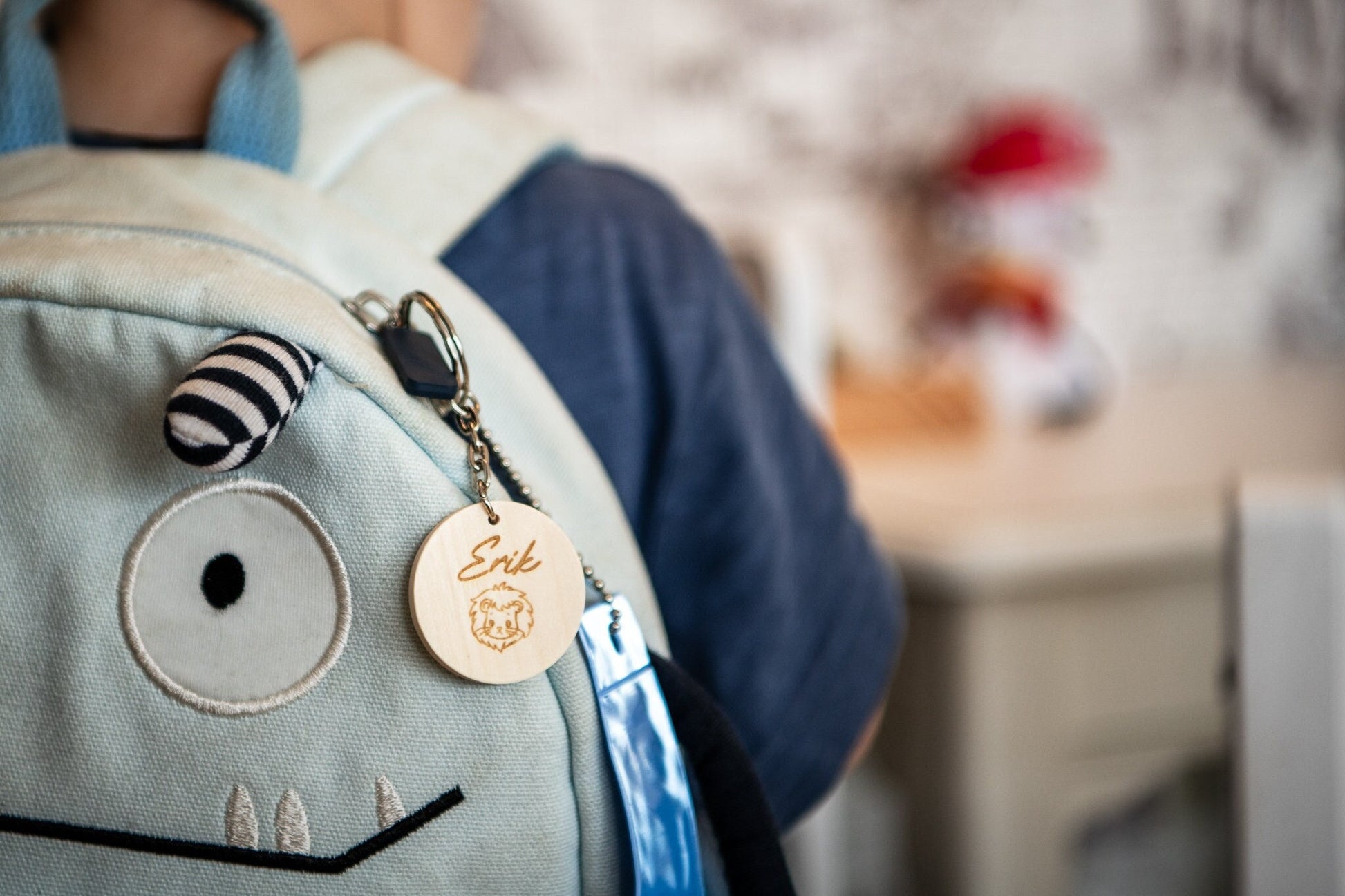 Der erste Tag in der Krippe oder der Schule. Wie könnte man stolzer sein. Auch als kleiner Anhänger für die Federmappe. In der Tasche um an Mama oder Papa zu denken und sich daran zu erinnern das man mutig ist.