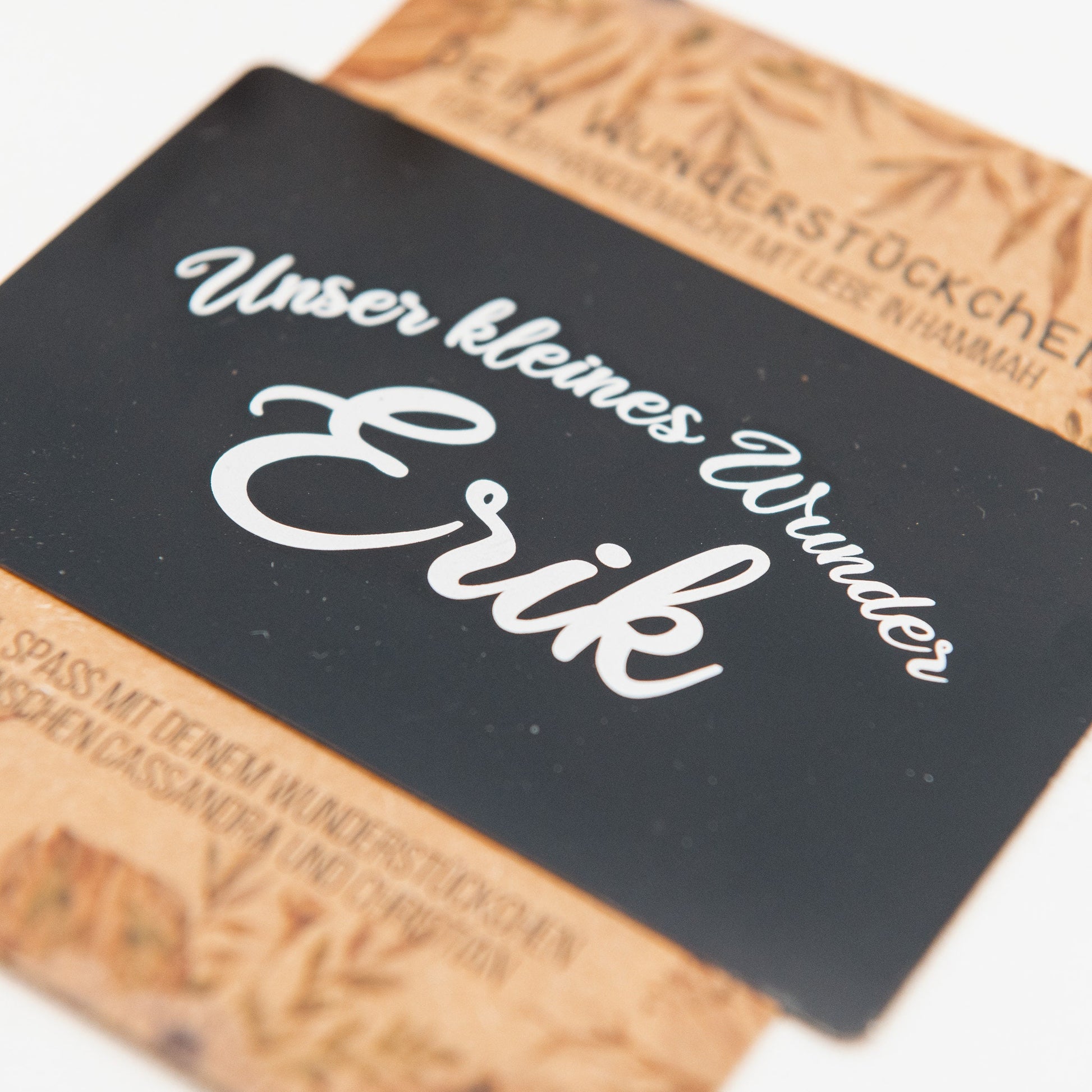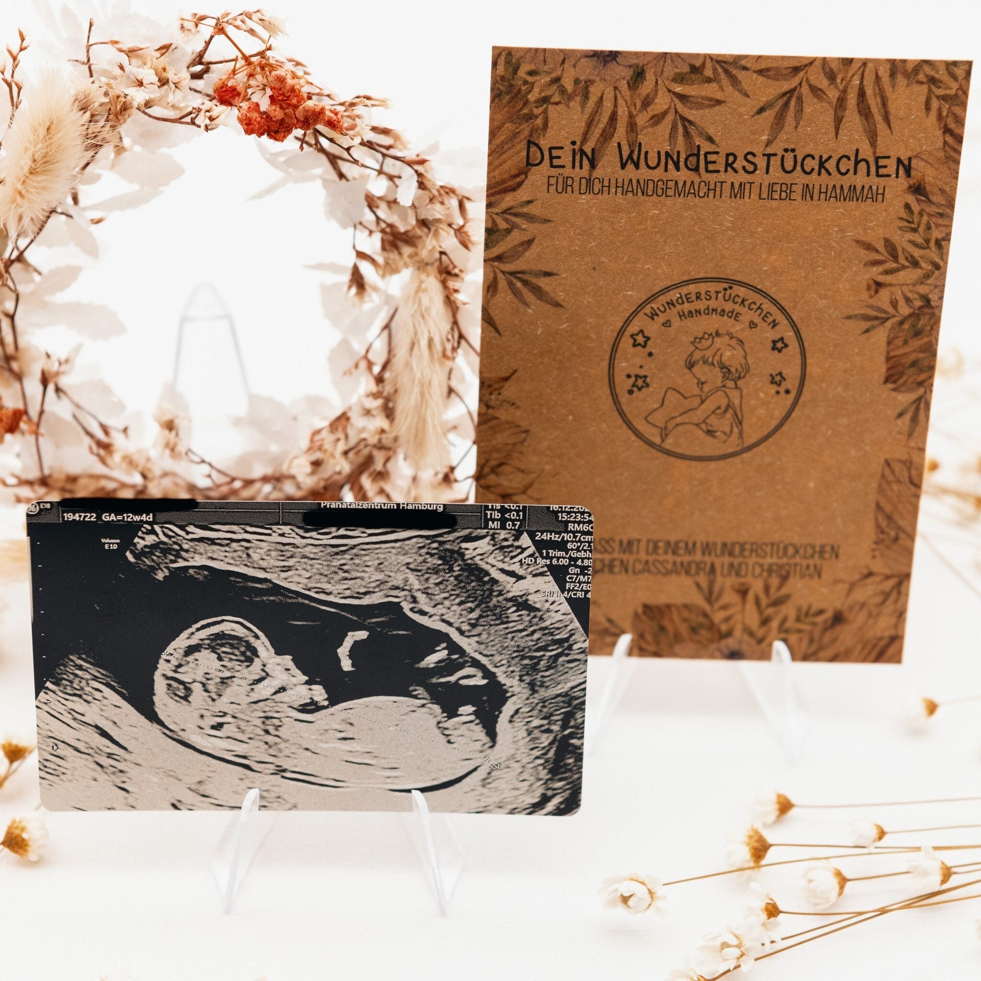 Schwangerschaftserinnerung personalisiert, Ultraschallbild auf Metallkarte zum Mitnehmen in Visitenkartengröße